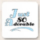 Apenas t-shirt tão adoráveis, bodysuits, babadores, coberturas, panos do burp, ímãs, etiquetas, bolsas, e outros artigos com um design de texto azul e preto.