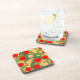 This coaster features an apple camo pattern in shades of red, green, tan and brown. The apples are in varied sizes in a pop art vector art style. The art style is trending on artstation. The coaster is a hard plastic coaster with a non-skid cork backing. There are six plastic coasters with cork backs in the coaster set. The coasters are great for parties, home use and business branding.