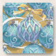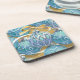 Padrão de bola de Natal perfeitamente ilustrado com fitas brancas fluindo através de confete, adornada com fitas de ouro e fundo dourado. Por Surface Pattern Designer L Diane Johnson.