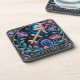 Esta porta copos exibe uma pintura de Art Nouveau que mostra o sinal Sagittarius zodiac nas matizes ricas de azul-safira, violeta e ouro cintilante. O glifo Sagittarius integra-se ao design, entrelaçado com flores e motins celestiais girando, enquanto a palavra Sagittarius aparece em uma fonte estilizada próxima ao fundo. Os sotaques metálicos destacam o glifo e os elementos florais, captando a luz com iridescência sobre um fundo de nebulosas giratórias. A imagem é centrada e equilibrada, evocando um sentimento de sofisticação e beleza. A porta copos é uma porta copos de plástico duro com suporte de rolha. Há seis portas copos no conjunto de portas copos.