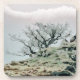 Uma geada solitária cobria uma árvore de montanha selvagem com nuvens de neve no céu. País de Gales, Reino Unido.