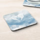 O branco emplumou-se as asas do anjo que formam uma forma do coração em um fundo do céu azul e das nuvens