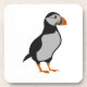 Um bonitinho Puffin Atlântico ilustrado pela vista lateral. A cabeça deste pássaro bonito está virada para mostrar sua marca de bico