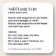 Raise a toast to old times! This personalized "Auld Lang Syne" lyrics coaster set is the perfect detail for your New Year's Eve party, or a thoughtful keepsake gift. Featuring the first verse and chorus of the classic poem by Robert Burns, these coasters are beautifully designed with clear, legible text. Below the poem is text you can customize, with a family name, date, or a short message to commemorate your Hogmanay celebration. Ideal for use as New Year's party favors, elegant holiday table decor, or a customized housewarming gift.