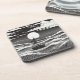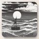 Um pequeno barco está sozinho num mar vasto e tempestuoso, rendido em preto e branco. As ondas são grandes e instáveis, e o céu é escuro e sombrio. O barco, jogado pelo mar grosso, parece pequeno e vulnerável, enfatizando a vastidão e a potência do oceano.