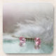 Um bonito conjunto de portas copos para as gais adoráveis da safra. Apresenta penas brancas, pinos de bobby e duas joias cor-de-rosa ou diamantes. Tudo colocado sobre uma mesa verde/teal de menta desbotada bonito e uma cinza muito clara para fundo branco. Lembrete de uma mesa vintage. Muito bonito.
