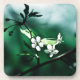 Vista aproximada da cereja branca floresce dentro a cerejeira. Brincar de cor verde e branca, sombras claras e escuras. - Os sopros estão espalhados pelo vento e o vento não se importa nada, mas as flores do coração que nenhum vento pode tocar. (Yoshida Kenko)