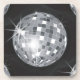 "bola de disco prateada"disco, "bola de disco", febre de disco", discoball, "bola espelhada", "bola espelhada", música, "antiquada", plur, rave dos anos 70, 70, retrô, anos setenta, presente, prata, presente preto, metálico, dj espelhado,