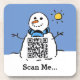 Ilustração de desenho animado de um boneco de neve em um dia ensolarado, com seu próprio código QR.