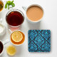Brocade floral de turquesa majestosa em uma porta copos preta. A rica cor da turquesa provoca um velho estilo real pertencente à era dos reis e rainhas. Jogue uma festa como a realeza quando você usar esta magnífica porta copos de brocadas.