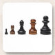 Uma linha de cinco peões de xadrez de diferentes tamanhos, do menor à esquerda para o maior à direita, como um símbolo de crescimento da carreira empresarial. Isolado contra o fundo branco.