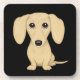 Cachorro de Cartoon de Creme Curto Cachshund Bonito com Grandes Olhos e Olhos Olhando para Cima. Um cachorro doxie engraçado parece muito doce e talvez um pouco culpado. Esta montanha russa divertida de bebidas de amantes de cachorros com natas inglesas protegerá seus móveis de madeira enquanto adicionará um toque pessoal ao seu espaço de vida. Veja o Doodle World de Jenn para ver mais arte de cachorro e presentes para amantes de todas as raças de cães.