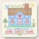 Este design personalizado da casa de campo é feito para assemelhar-se a um demonstrador do bordado do ponto da cruz do vintage. Mostra uma casa azul feita de "x " s com um pássaro, o sol e abundância dos corações e das flores no mesmo estilo. O fundo é bege com um leve teste padrão da verificação olhar como o material do bordado.