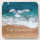 Gaivota maravilhosa sobrevoando o surf de ondas do mar na costa. Personalize de acordo com o seu gosto.