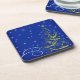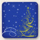 Linda cena de árvore de Natal azul, disparada por flocos de neve. Presente perfeito para o inverno.