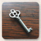 Fotografia de uma chave de esqueleto de ornamentado em uma caixa de madeira.