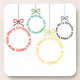 Celebrate the season with this elegant minimalist Christmas design featuring hanging ornament circles created entirely from festive typography. Each ornament is formed with the phrases “Merry Christmas” and “Happy New Year,” arranged in colorful circular shapes and finished with delicate bows.