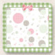 Um item de padrão de círculo de modo feminino com círculos bonito de padrão de gingham rosa, verde e castanho e flores e formas retrorreflectoras fofinhas.