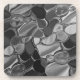Porta-copo Cinzas claras e formas arredondadas escuras.