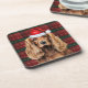 Fun coaster set for the person who loves their Cocker Spaniel. This one wears a red winter hat that is matched with the red and golden plaid for the holiday season.