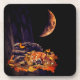 Colagem de vida selvagem com raposa, ouriço e lua âmbar. Noites escuras brilham brilhantemente em sua própria singularidade.