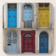 Conjunto de portas frontais coloridas em La Valeta, Malta. Colagem de portas frontais coloridas em Malta