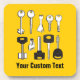 Um conjunto de chaves pretas e brancas com texto personalizado.