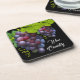 Este adorável conjunto de portas copos de plástico é mostrado com uma impressão de arte em aglomerado de uvas com texto que diz País do Vinho. A cor superior é Preto. Personalize este item ou comprar como está.