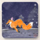 Uma raposa alegre correndo numa noite de inverno.