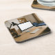 Esta porta copos possui um computador e uma mesa. A imagem contém um quarto de estudante universitário com um mapa, estante, conselho de boletins, cama, janela, luz de mesa, monitor de computador, teclado e mouse. A imagem é uma foto digital estilo. A porta copos é uma porta copos plástica com um suporte de cortiça não derrapante. Há seis portas copos plásticas no set.
