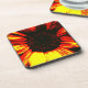 The reds and yellows of the enhanced sunflower picture on this contemporary coaster really stand out, the orangey red petals and yellow petals surround a very large black and red seed head and look great against the black background. The original design is vibrant and different. The original photo of this flower (the flower was growing in my back garden when I photographed it) has been enhanced to give the color vibrancy to the details that make the image really stand out and the colors pop.