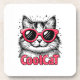 Minimalist cat face with bold red glasses and hand-drawn "CoolCat" typography — a playful, stylish design perfect for t-shirts, stickers, and accessories.