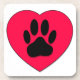 Coração vermelho bonito com impressão de pata de cão. Imagem original.