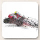 Um design de um motociclista de alta velocidade deixando poeira e detritos atrás dele.