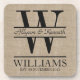 Faça seu próprio monograma simples, elegante, original com este design feito sob encomenda do logotipo com tipografia retro sobre uma luz, fundo marrom natural da imagem de serapilheira. Substitua o texto da amostra com sua inicial da família, nomes, data wedding ou o outro texto para um presente personalizado. Faz um presente maravilhoso para Wedding, aniversário, housewarming ou hospedeira, aniversário, aposentadoria e muitas outras ocasiões especiais. Por favor não hesite contactar-me se você precisa a ajuda com personalização! (Nota importante: Este produto não é feito do tecido real de serapilheira. Uma imagem/foto da serapilheira natural é usada como o fundo do design e impresso em uma superfície plana.)