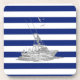 Um cromo prateado como design de barco de pesca em uma decoração de listras azuis marinho. Um presente náutico moderno. Use o link "Perguntar a este Designer" para entrar em contato conosco com suas solicitações especiais de design ou para obter assistência com qualquer das suas necessidades de personalização.