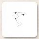 This illustration showcases a stylized cat silhouette, drawn with a single continuous line that flows smoothly from the head through the body and tail, creating a graceful curve. The cat’s form is complemented by three hearts of varying sizes, positioned strategically to suggest companionship. The design contrasts starkly against a plain white background, emphasizing the simplicity and elegance of the black lines. The minimalist style gives the piece a modern feel.