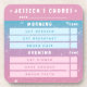 This chore coaster helps keep track of all the things your daughter needs to do each day. It has a glittery pastel pink and blue color scheme, and features two section (Morning and Evening), each with 3 tasks that are customizable. Default options include get dressed, eat breakfast, etc. You can also add your child's name at the top. Write the date and tick off the tasks with a whiteboard marker. ••• For more cute girly homewares, visit my store Zazzle.com/Princess_Palace ••• For custom orders, send me a Zazzle message