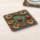 Damascos coloridos que estão sentados em uma superfície floral verde