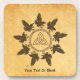 Nove corvos vivos (Corvus corax) circulam em torno de um anel Nórdico/Celta. Um triquetra, figura triangular de três arcos entrelaçados, aparece no centro. Tudo é sobreposto a uma imagem antiga de fundo de papel, dando-lhe uma sensação medieval. Personalize adicionando seu próprio texto. Na mitologia nórdica, o número nove está associado a Odin e suas valquidades, conectando-o à natureza cíclica da vida, morte e renascimento. Ravens eram símbolos multifacetados incluindo a conexão entre os mundos dos vivos e o morto. Na verdade, essa imagem pode ser pensada em um ouroboro aviário.