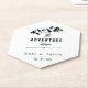 Dê ao seu convidado um belo presente de favor rústico com ilustração de montanha e fonte cuidadosamente escolhida para aquele olhar especial com a escrita personalizada "A aventura começa" e seus monogramas e data
