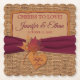 Estas portas copos de casamento em papel de barato são uma forma excelente de manter o seu tema "Cair no Amor" forte. Estas portas copos de casamento personalizadas "CHEERS TO LOVE!" têm um plano de fundo simulado de burlap, com uma fita burgundy a correr através da parte inferior que tem um aglomerado de folhas de outono em vermelho, laranja, verde e ouro com uma pequena madeira laranja ouro a olhar para o coração e arco de fio laranja a cair abaixo. A parte superior da área de design de porta copos tem uma área de texto de aparência de papel Kraft simulada sobre o padrão de burlap. Os nomes da noiva e noiva e a data do casamento são impressos em vinho burgundy e laranja queimado com uma inscrição laranja acima que diz, "CHEERS TO LOVE!!" no topo. Se você precisar de itens adicionais correspondentes, envie seu pedido por e-mail para niteowlstudio@gmail.com ou use o recurso de bate-papo Zazzle para entrar em contato.