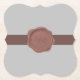 Design moderno e elegante apresenta uma banda mauve e um centro de "selo de cera" que podem ser personalizados com as iniciais de um casal em fundo de cinza leve