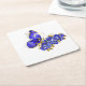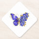 Borboleta de flores cinza, azul, safira, espumante com asa decorada com flores preciosos azuis com folhas de ouro sobre fundo branco.