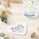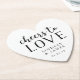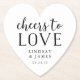 Torne a hora do coquetel do seu casamento ainda mais memorável com esses porta-copos de papel em forma de coração docemente românticos, apresentando "brindando ao amor" e seus nomes e data de casamento abaixo. O design de tipografia preto e branco chique torna uma adição elegante, porém leve, ao seu casamento.