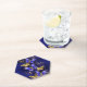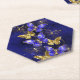 Composição de borboletas luxuosas de safira e joias de ouro em fundo azul texturizado.