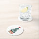 Add a touch of Christmas magic to your home with this cute seasonal coaster, featuring a classic snow-covered Christmas tree topped with a red bow and surrounded by festive wrapped gifts. This scalloped paper coaster is great for a Christmas dinner party with your loved ones.