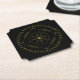 Cycles paper coasters. Cycles is a Germanic design created by Anna M. Asbury and consists of a black background with an Aegishjalmr in the center and encircled by Elder Futhark Runes. The design is enclosed in a diamond with the Ingwaz Rune, flanked on all four sides with a bind rune, and encircled by Jera and Ingwaz Runes.