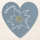 portas copos de papel para conselho de pasta de na moda, feitas com um aspecto azul de papelão, com gráficos do contorno de uma flor Edelweiss branca, no meio. O texto branco diz Edelweiss. Excelente para festas, uso cotidiano e ideias de presentes.