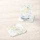 Este porta-copos de casamento é elegante, sofisticado e divertido! Apresenta um belo design dourado e branco com letras em roteiro moderno e delicados enrolamentos e espirais dourados nos cantos. O texto diz "Por favor, não leve meu drink, estou dançando" com espaço para os nomes do casal e data do casamento na parte inferior. Ótimo souvenir para seus convidados e também uma forma prática de informar a equipe de espera para não limpar os drinks ainda!